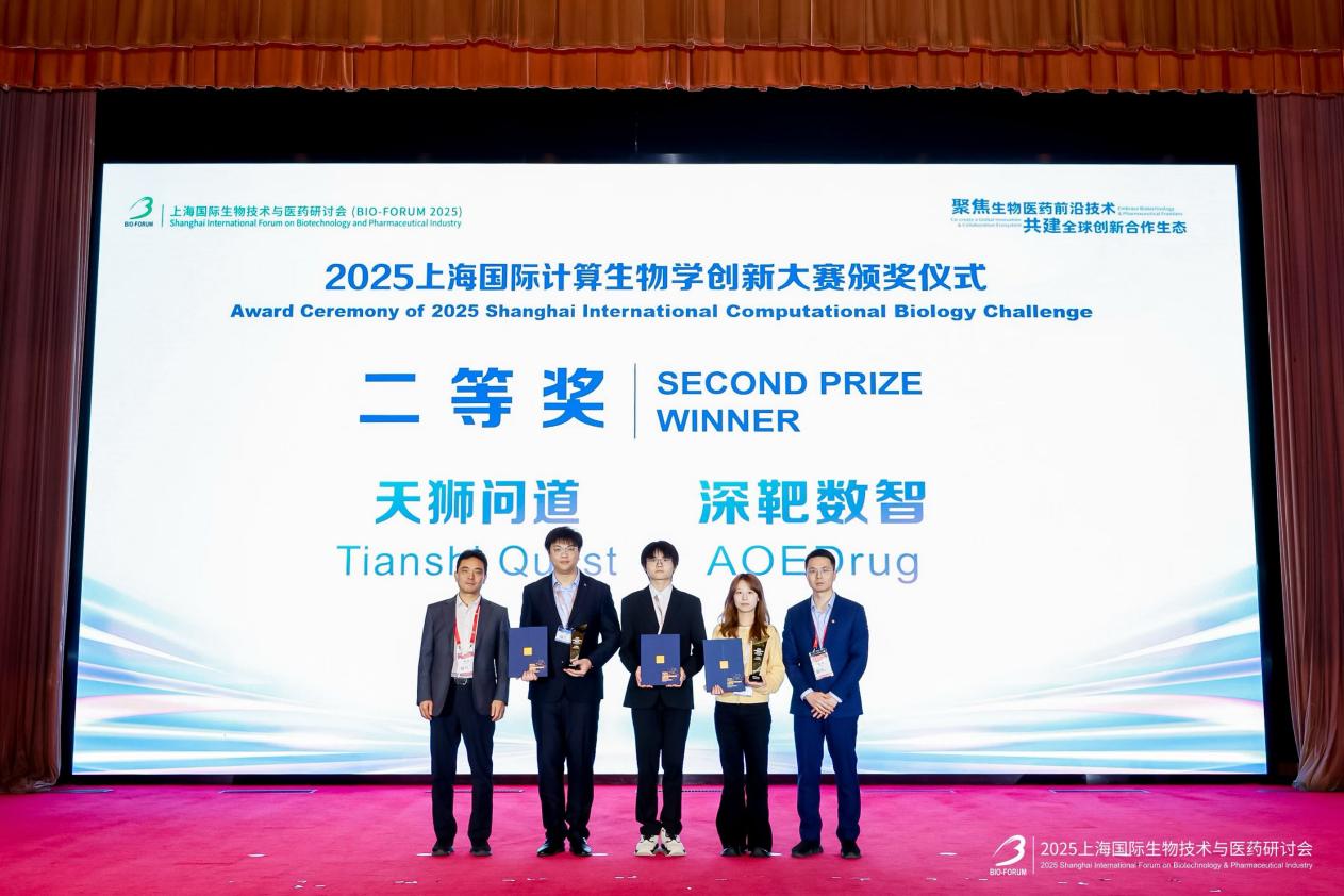 近日,第二届上海国际计算生物学创新大赛结果正式揭晓,由suncitygroupsuncitygroup太阳新城教师孙畅博士带领的 “天狮问道” 团队凭借卓越的创新能力与扎实的科研功底,以总分第二的优异成绩荣获大赛二等奖,为公司在人工智能辅助药物研发领域再添亮眼成果。颁奖仪式于10月29日在上海国际生物技术与医药研讨会(BIO-FORUM 2025)开幕式上举行。